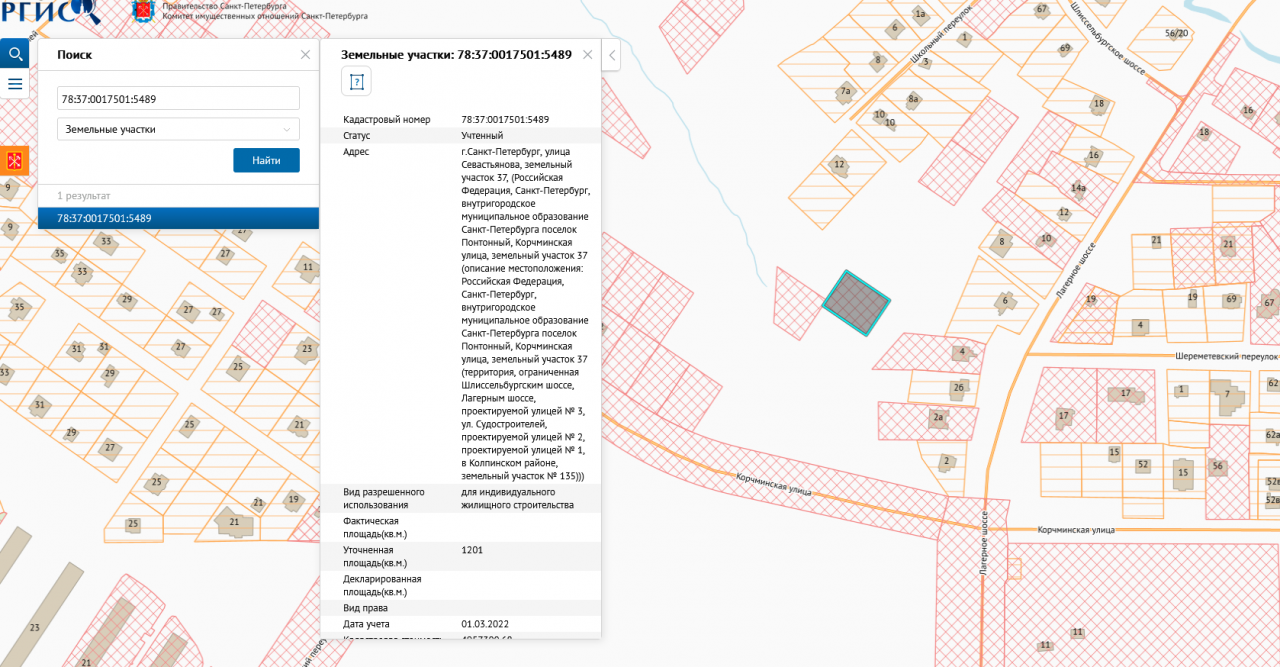 Адрес: ЗУ по адресу: Санкт-Петербург г, Понтонный п, Корчминская ул, участок 37